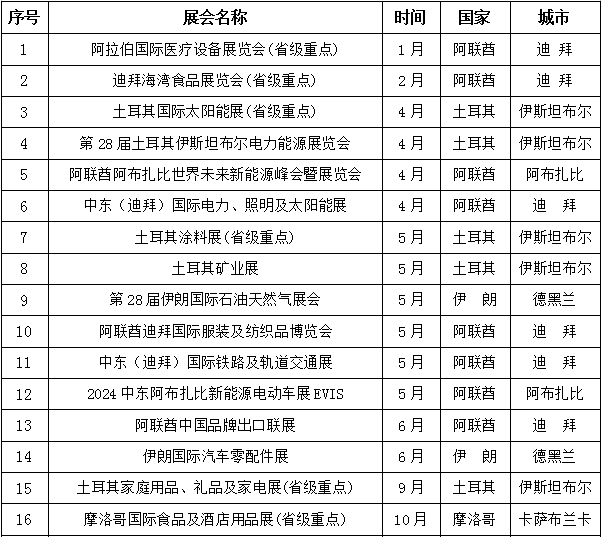 关于印发2024年中东地区国际展会推荐名录的通知