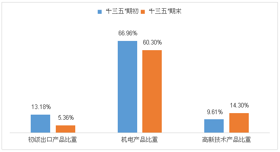 对外贸易结构持续优化。初级出口产品、机电产品占全市外贸总额的比重从“十三五”期初的13.18%、66.96%下降至“十三五”期末的5.36%、60.3%,高新技术产品占全市外贸总额比重从“十三五”期初的9.61%提升至14.3%(见图2)。外贸主体不断壮大,中小企业活力增强。2020年,全市备案外贸企业1649家企业,有进出口实绩企业631家,比“十三五”期初增加222家。其中,进出口额过千万美元的企业35家,较“十三五”期初增加10家,涌现出科能新材、西迪技术、精工硬质合金、恒茂高科、陶润实业、仙凤瓷业、华鑫电瓷、裕丰烟花、吉利烟花等一批成长性强的中小民营外贸企业。中车株机、时代电气、时代新材、中车电机、株冶、硬质合金、湖南长城7家企业进出口额过亿美元,较“十三五”期初增加5家(见图3)。