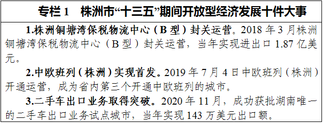 附录:株洲市“十四五”时期开放型经济发展十大任务