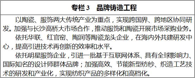 支持外贸主体创新发展。壮大外贸经营主体、优化进出口产品结构、创新贸易方式,推进三大动力产业、陶瓷和服饰产业转型升级,提高出口产品和服务的附加值,促进县域外贸质量提升。