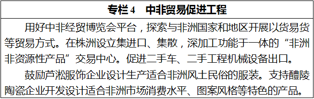 8.推进湖南机电(机动车)外贸基地项目建设,建成以高新区汽博园为主体的二手车出口基地项目,建设二手车海外市场和售后服务网络,建立健全二手车出口管理与促进体系。