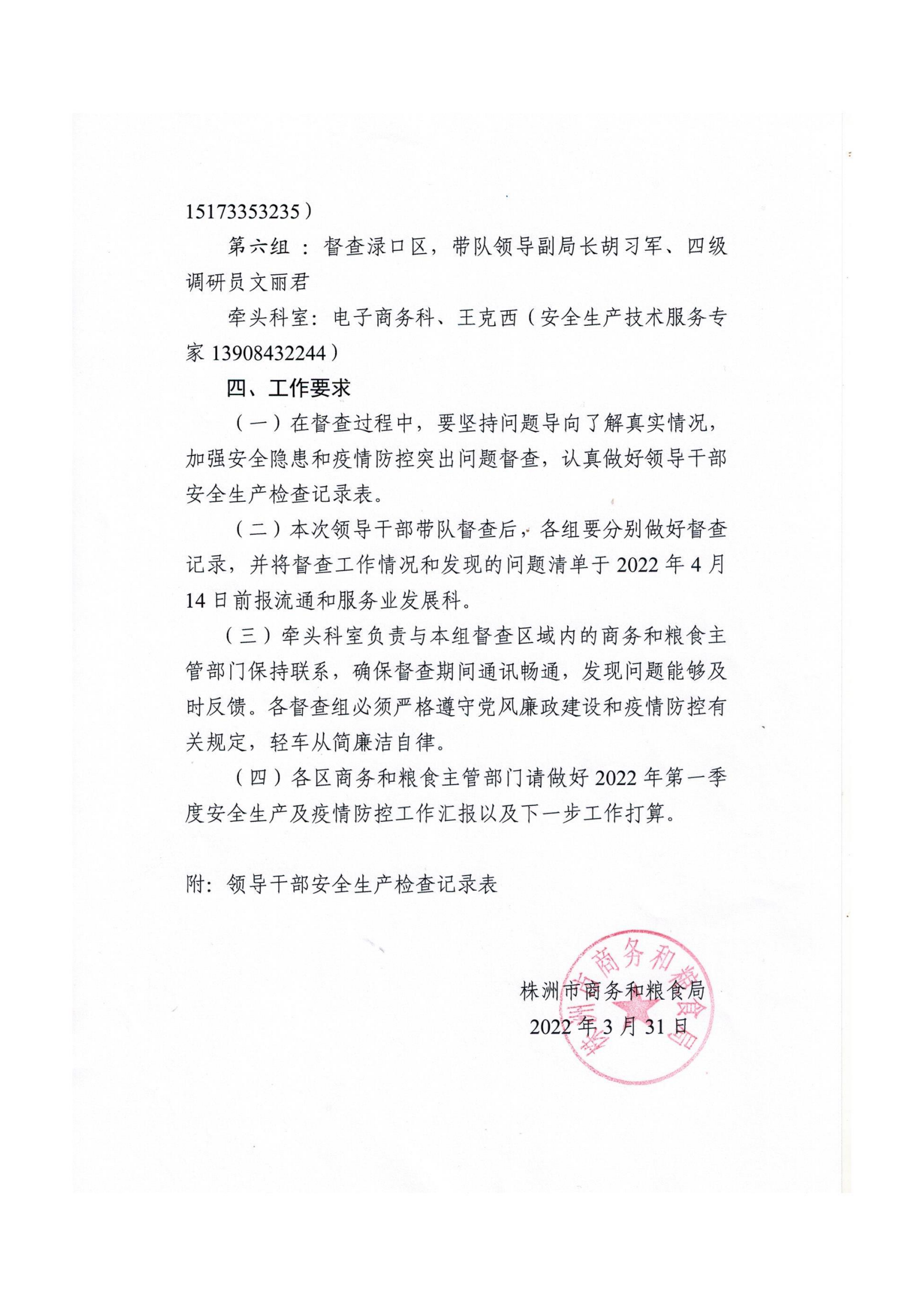 株洲市商务和粮食局2022年春季领导干部带队督查安全生产及疫情防控工作通知